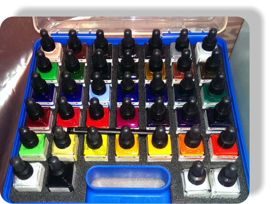 Für die meisten Arbeiten verwende ich flüssige Acryl Farben, ohne Lösungsmittel. Ansonsten dürfte ich nicht in meinem Büro arbeiten,da hätte die Familie auch nicht freude, wenn die ganze Wohnung nach Lösungsmittel riechen würde.