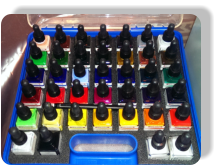 Für die meisten Arbeiten verwende ich flüssige Acryl Farben, ohne Lösungsmittel. Ansonsten dürfte ich nicht in meinem Büro arbeiten,da hätte die Familie auch nicht freude, wenn die ganze Wohnung nach Lösungsmittel riechen würde.
